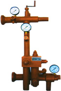 該裝置是根據電動(dòng)潛油泵井生產(chǎn)流程要求,針對寒冷冬季出液較稠需要摻水伴熱驅油,采出液量調節時(shí)需停泵更換油嘴,油嘴裝置需加保溫套防凍,井口散裝閥多,安裝工作量大等特點(diǎn),經(jīng)過(guò)多次試驗,精心研制而成的在線(xiàn)調節采出液排量的電泵井井口組合閥,該裝置適用于電動(dòng)潛油泵井。